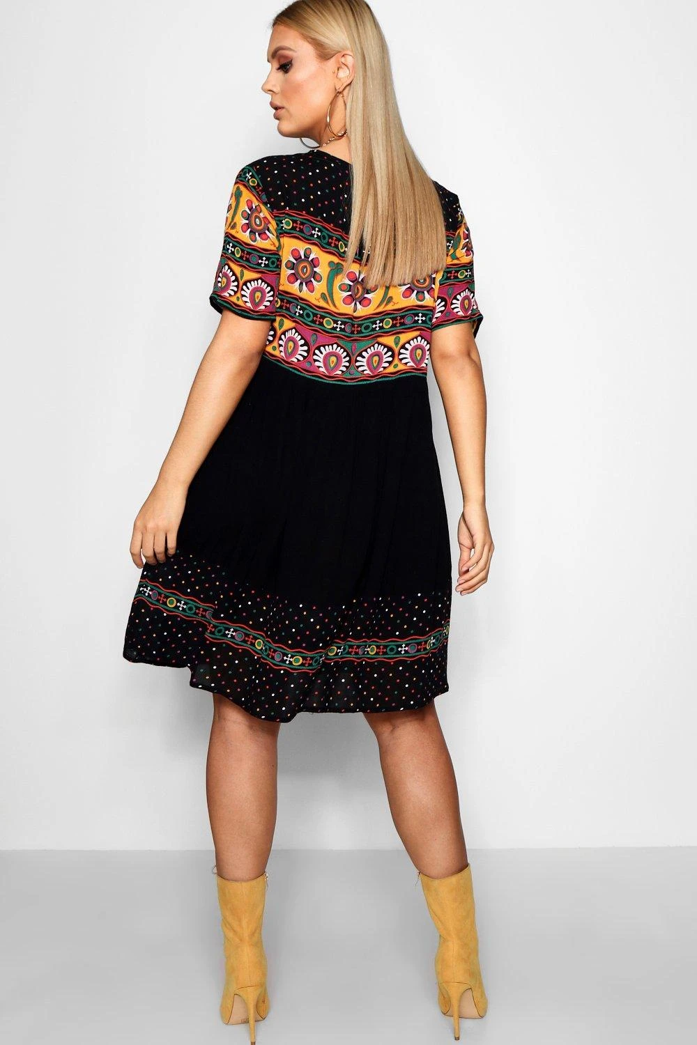 Soyez au top de votre style dans cette robe à smocks grande taille de notre dernière collection. Avec sa matière légère et aérée, ce modèle inspiré des années 20 offre une coupe ample et féminine. On adore cette pièce très facile à enfiler qui se fera une place de choix dans votre dressing grande taille. Associez la vôtre à des sandales épaisses ou à des baskets compensées : c’est la tenue à adopter cette saison.