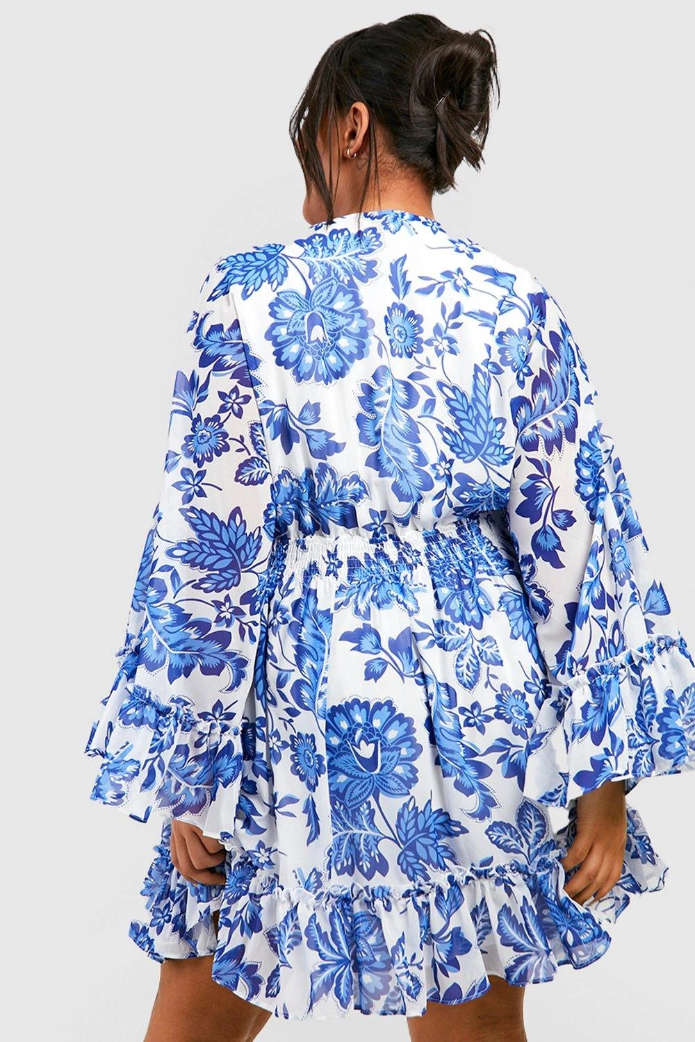 Grande Taille – Robe Babydoll Fleurie à Manches Larges