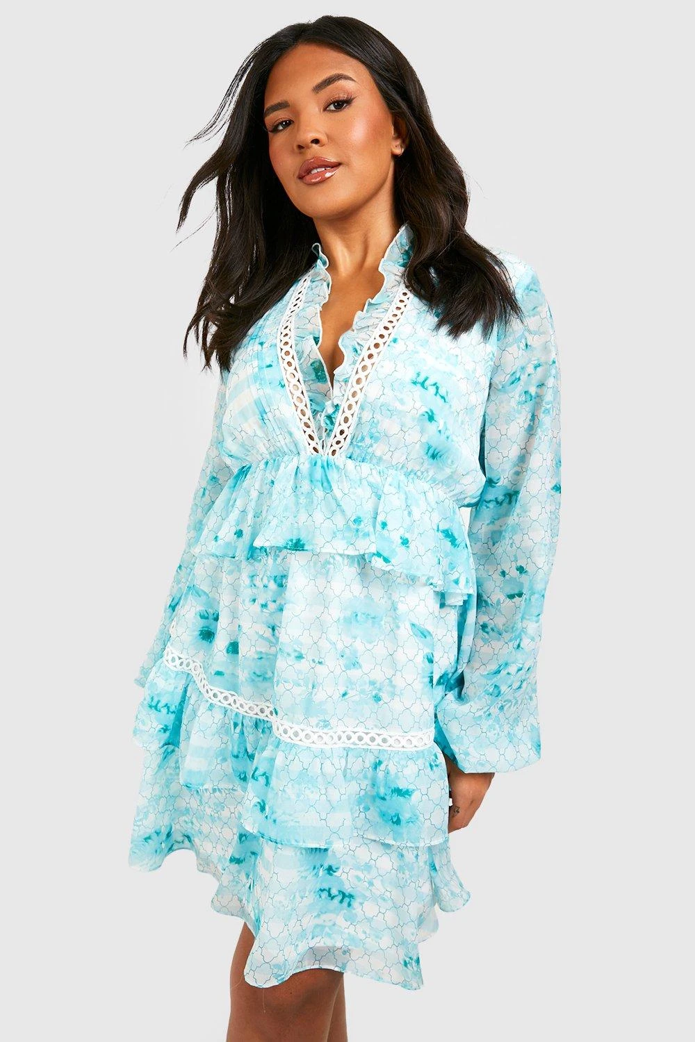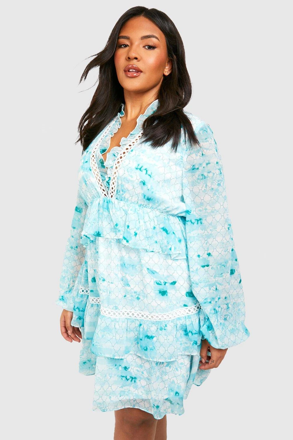 Grande Taille – Robe Babydoll Imprimée à Volants