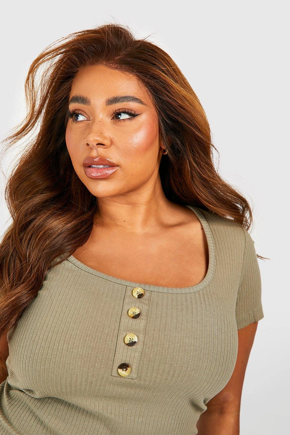 Grande Taille – Robe Courte Boutonnée à Manches Courtes