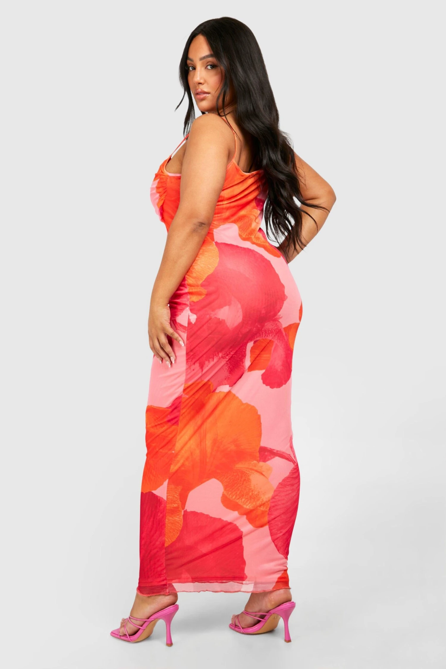 Grande Taille – Robe Longue Fleurie En Mesh