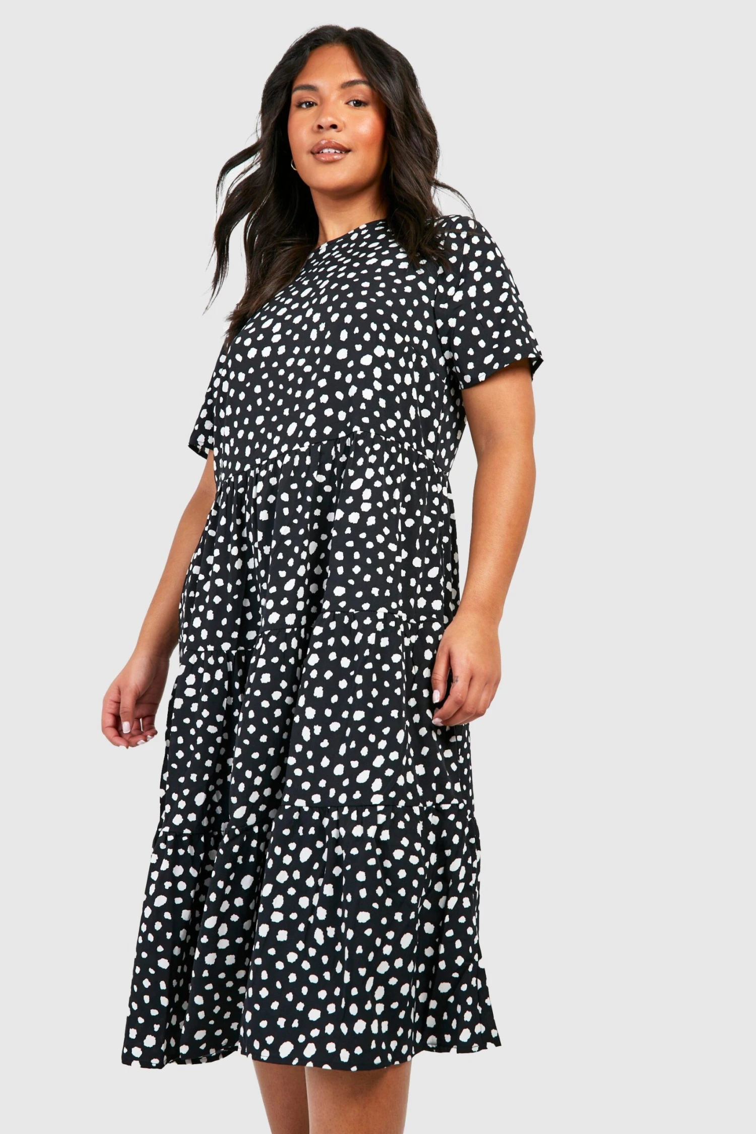 Grande Taille – Robe Mi-longue à Volants étagés