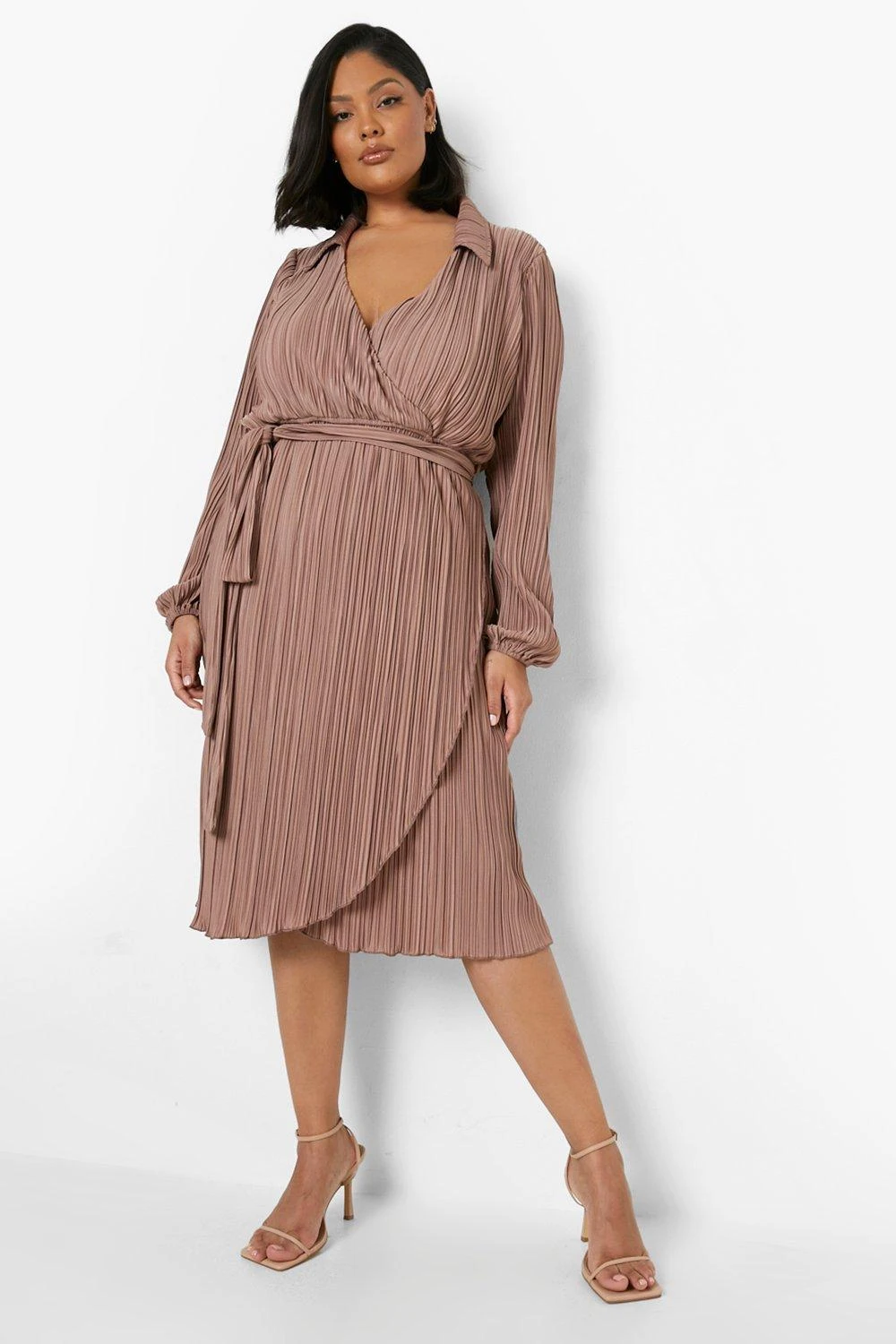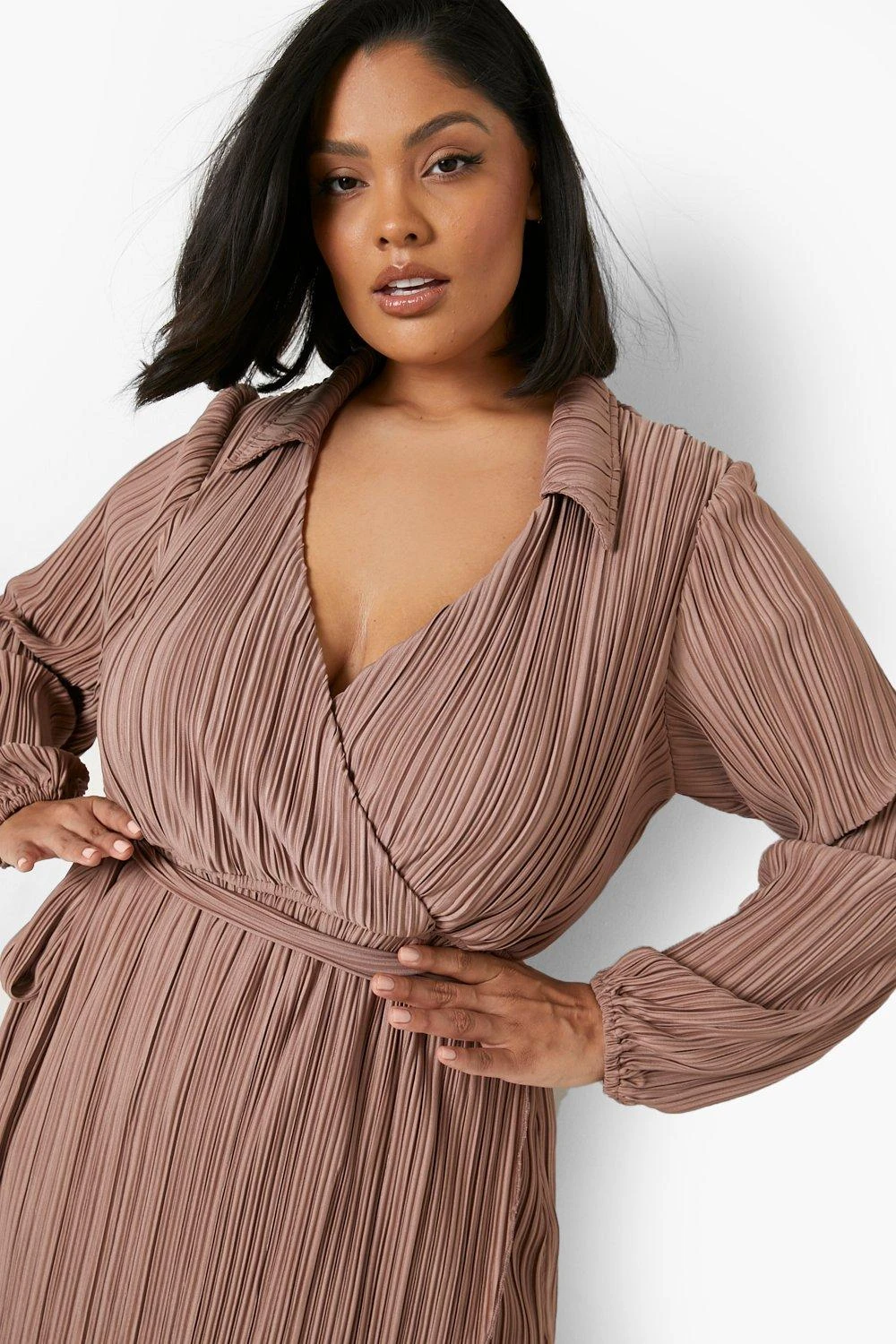 Grande Taille – Robe Mi-longue Croisée Plissée En Tissu Premium