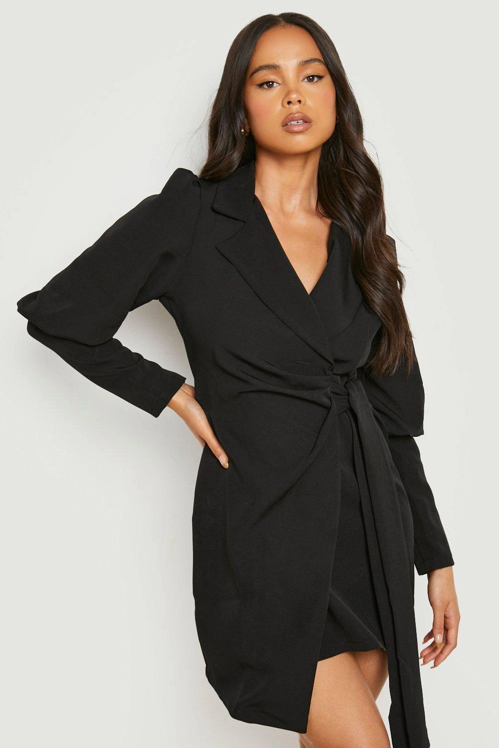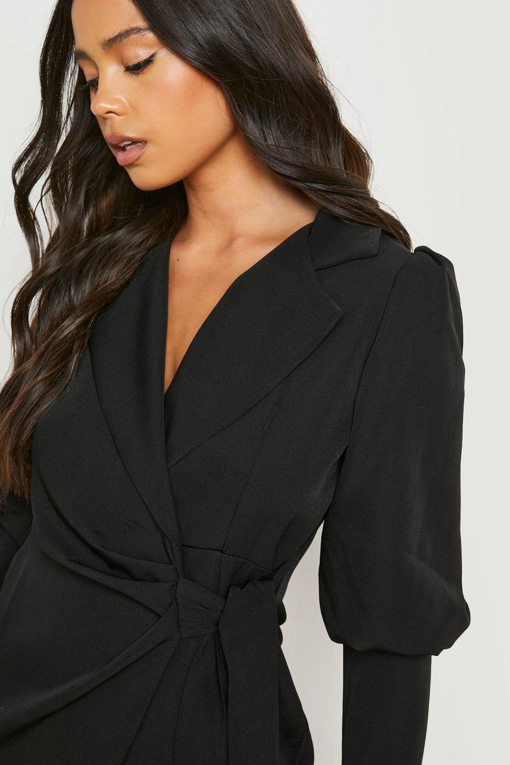 Petite – Robe Blazer Nouée à Manches Bouffantes