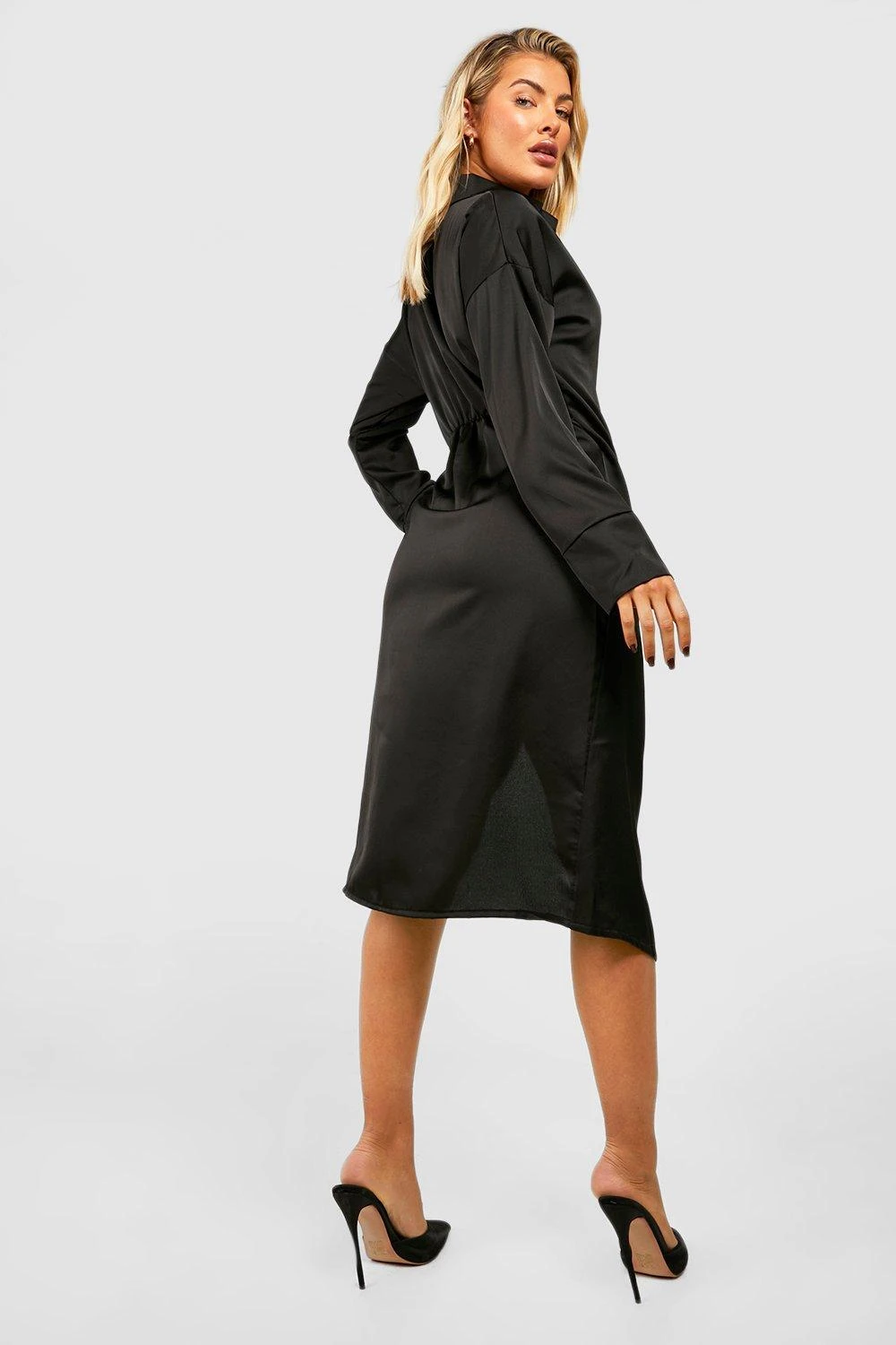 Robe chemise mi-longue satinée