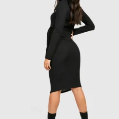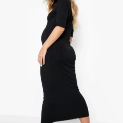 BOOHOO Maternité – Robe De Grossesse Mi-longue Côtelée à Col Nageur