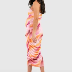 BOOHOO Maternité – Robe De Grossesse Mi-longue Froncée Tie Dye