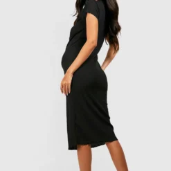 Maternité – Robe De Grossesse Mi-longue à Manches 3/4 Nouées