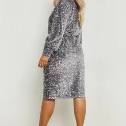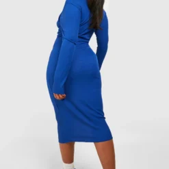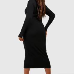 Grande Taille – Robe Mi-longue à Col Roulé En Maille Côtelée Douce