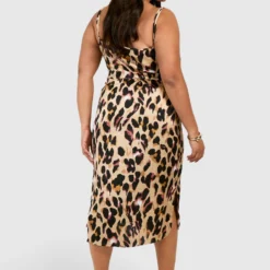 Grande Taille – Robe Longue Soyeuse à Col Bénitier Et Imprimé Zèbre