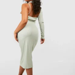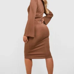 Grande Taille – Robe Mi-longue à Manches Longues Et Ceinture