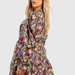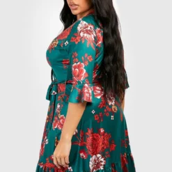 Grande Taille – Robe Patineuse Fleurie à Découpe Et Col Montant