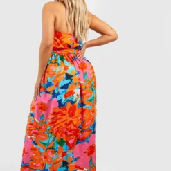 BOOHOO Grande Taille – Robe Longue Dos Nu à Imprimés Multiples