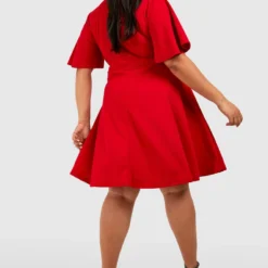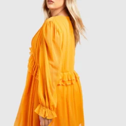 BOOHOO Grande Taille – Robe Babydoll Froncée à Manches Bouffantes