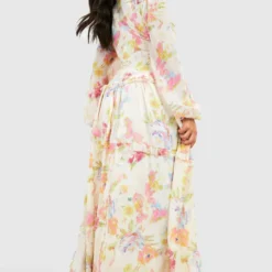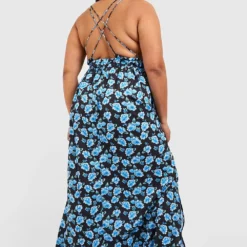 Grande Taille – Robe Longue Cache-cœur Ceinturée Imprimé Porcelaine