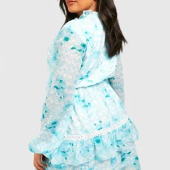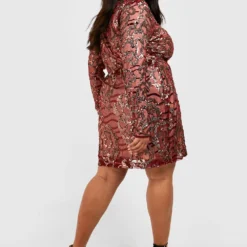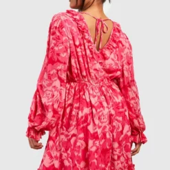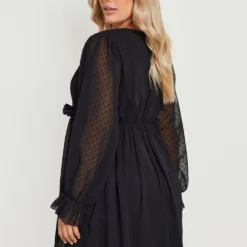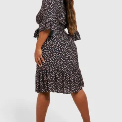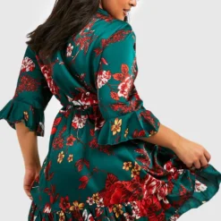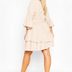 Grande Taille – Robe Cache-cœur à Volants Et Manches Longues