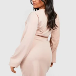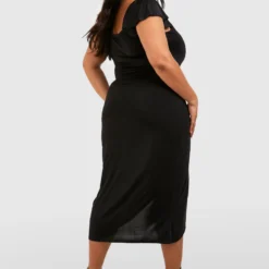 Grande Taille – Robe Cache-cœur Midi Près Du Corps à épaules Dénudées