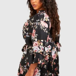 Grande Taille – Robe Chemise à Manches Longues Et Imprimé Cachemire