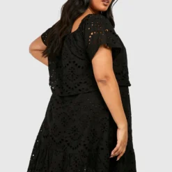 Grande Taille – Robe Courte En Broderie Anglaise à Col Bateau
