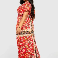 Grande Taille – Robe Longue à Imprimé Fleuri Et épaules Ajourées